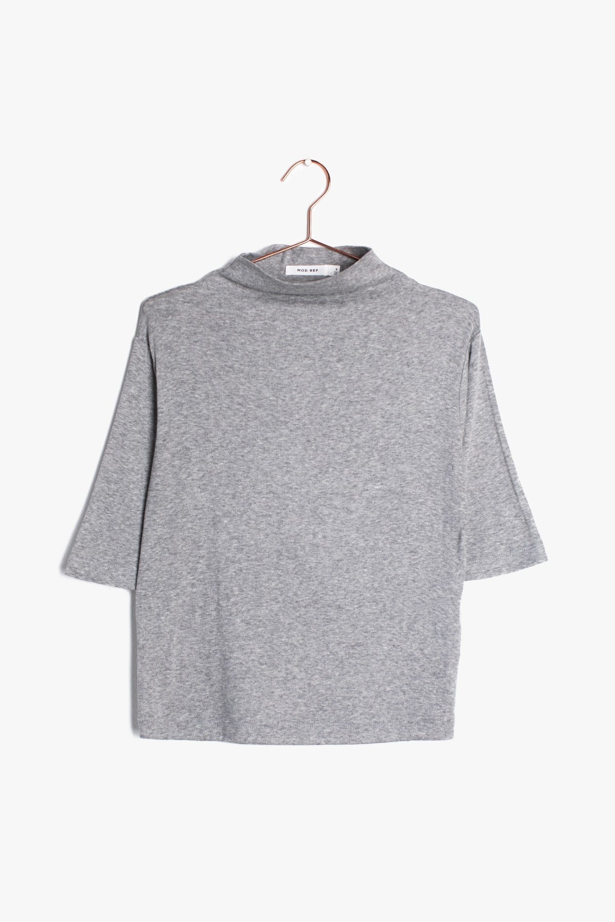 Light weight top with a 3/4 sleeve and mock neck for everyday wear